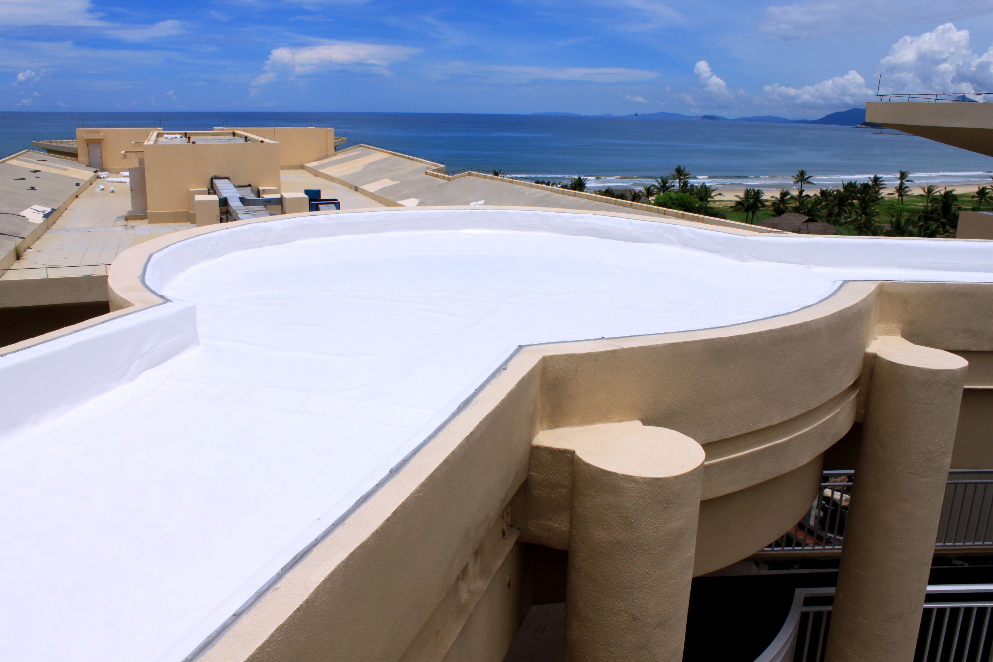 神州半島三面環(huán)海,一面接陸,面積24平方公里,東南長8.7公里,西北寬 2.7公里,東依牛標(biāo)嶺,南瀕浩潮南海,西靠老爺海港口,北臨東澳港。平均氣溫為24.4攝氏度,年日照時間達(dá)290天,氣候溫和,四季如春,是一個四季如春的陽光型半島,也是海南省萬寧市一處大型旅游風(fēng)景名勝區(qū),該項目為神州半島一高檔星級酒店。屋面防水面積約11000㎡。