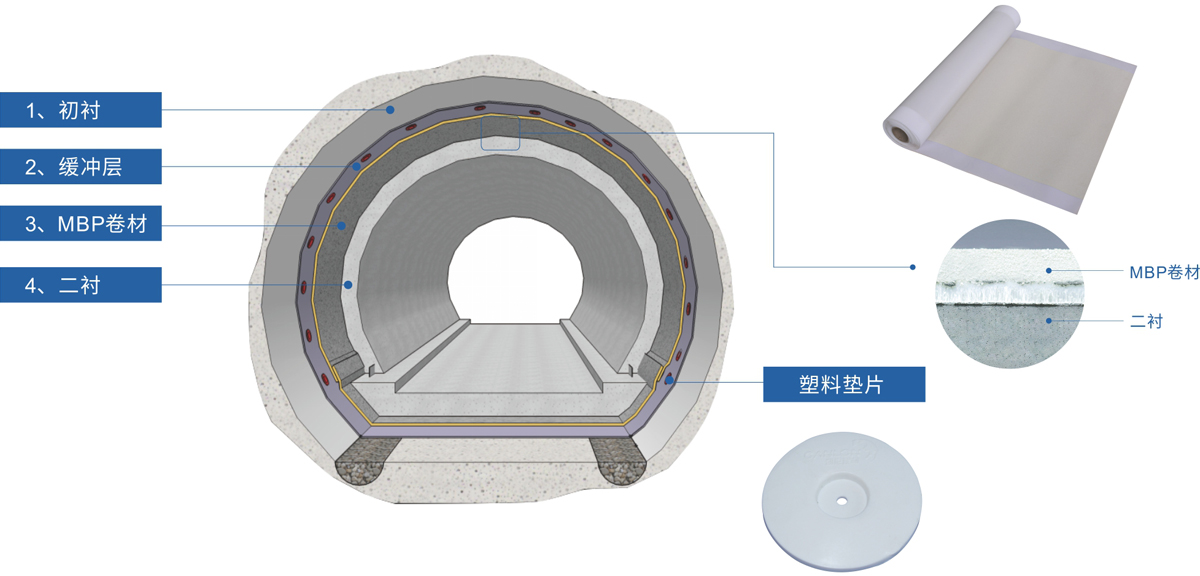凱倫暗挖隧道系統(tǒng)解決方案,以“融合防水”為理念,采用以MBP-P為代表的高分子自粘膠膜預(yù)鋪防水卷材,能有效地與后續(xù)澆筑的混凝土結(jié)構(gòu)融為一體,避免水在兩者之間竄流。近幾年,該卷材也開始運(yùn)用于隧道項(xiàng)目,并被多個(gè)鐵路建設(shè)部門所關(guān)注。